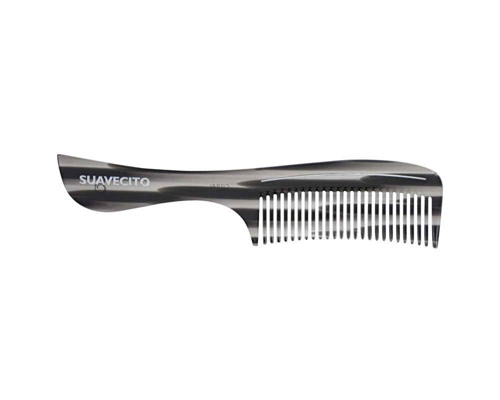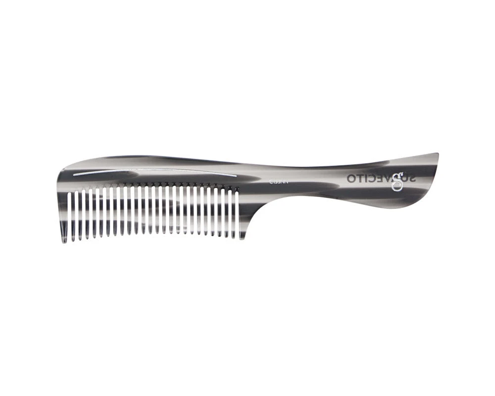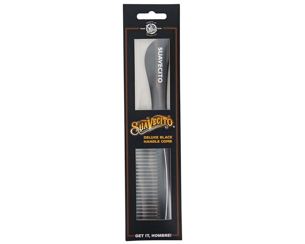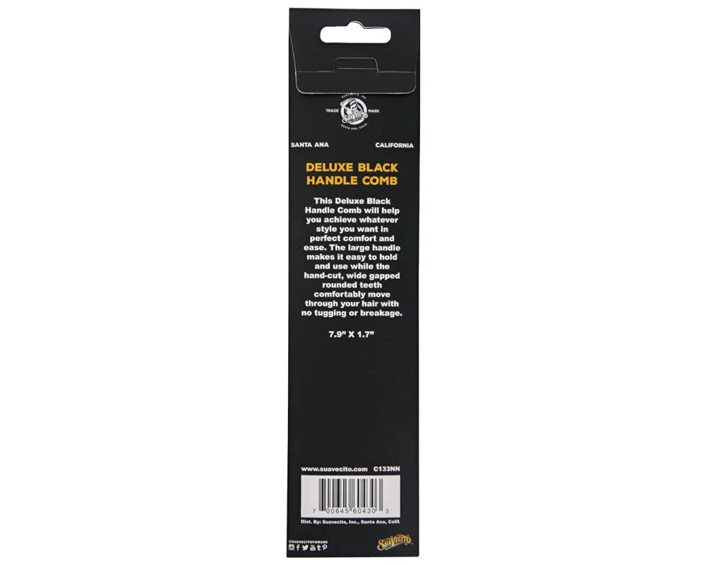 This Deluxe Black Handle Comb is comfortable to hold and easy to use. The hand-cut rounded teeth a perfectly placed to glide smoothly through your hair as you style.