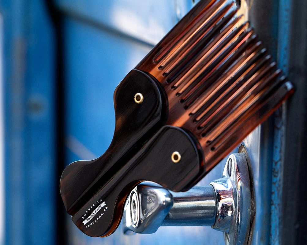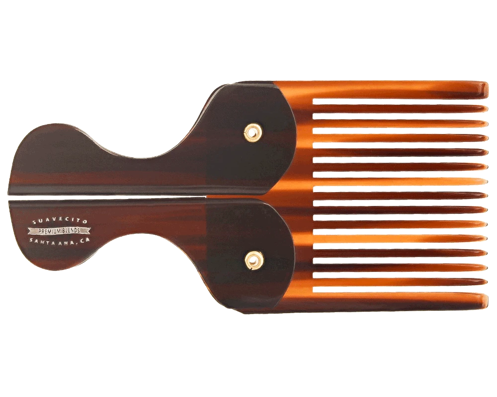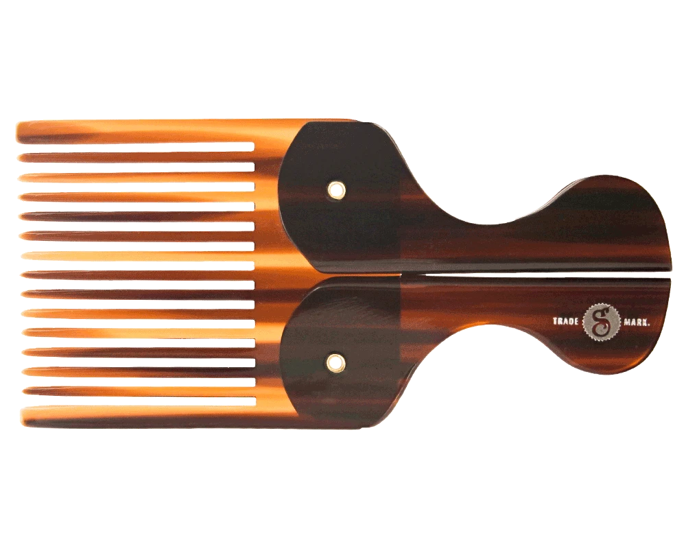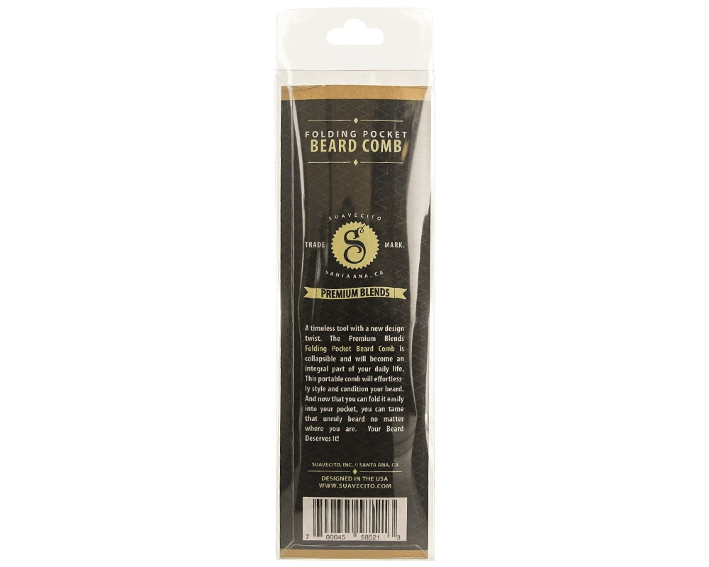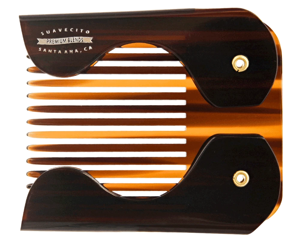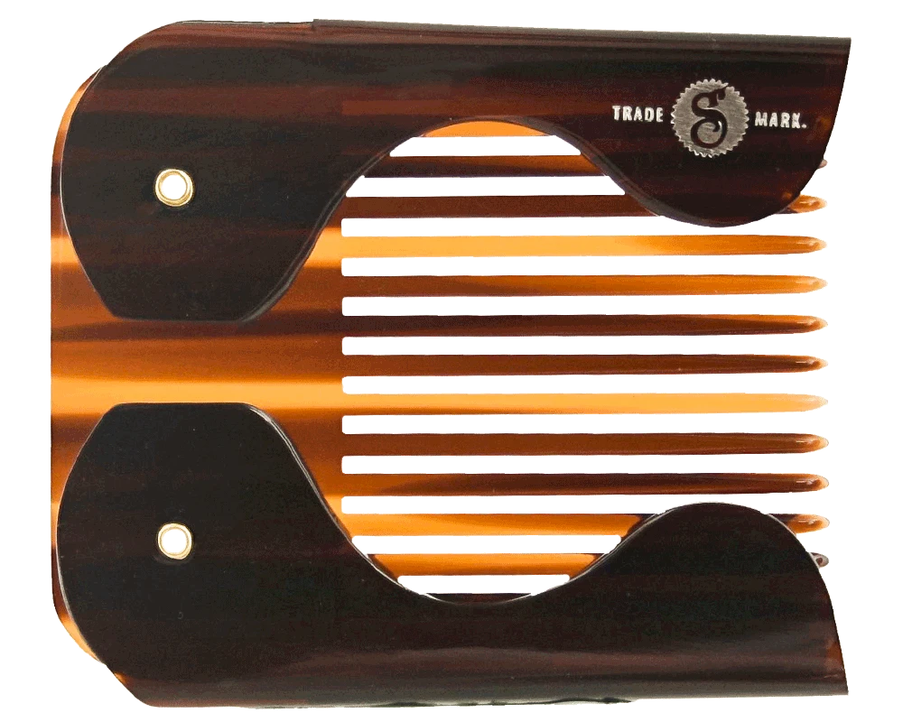 A timeless tool with a new design twist. This Folding Pocket Beard Comb is collapsible and easily pocketable to become an everyday part of your daily life. Your beard deserves to be well taken care of and attended to no matter where you are. This comb will easily style and condition your hair. It is stamped with the Premium Blends Logo on the handle and comes to you in a rich brown tortoiseshell color.