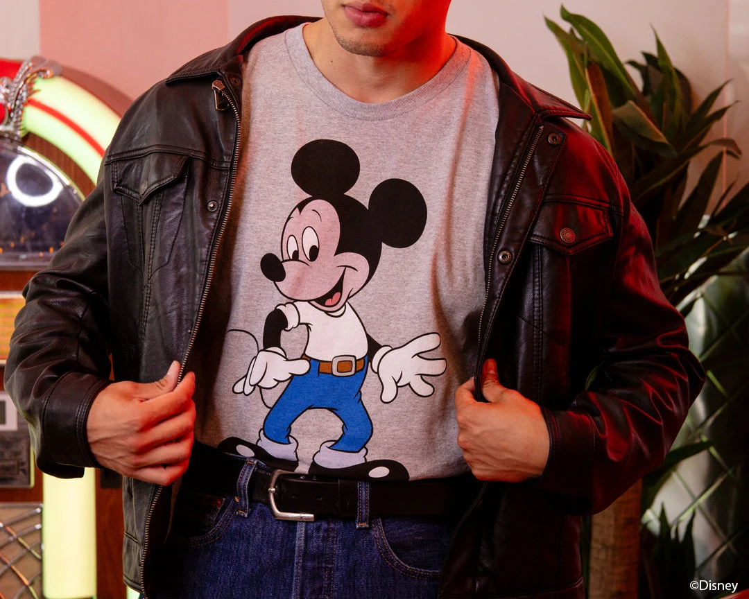 This OG Mickey Mouse Tee is a timeless tribute to everyone’s favorite animated icon. Printed on a premium gray tee, it captures Mickey Mouse sporting classic jeans and a white t-shirt looking cheery and playful.Â