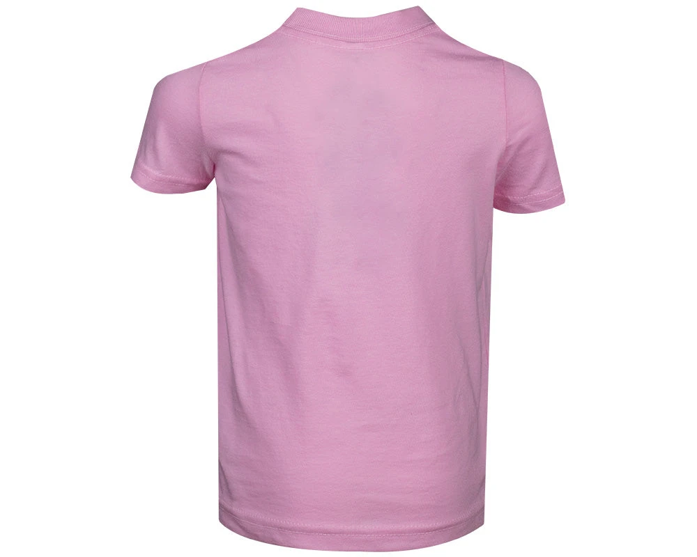 - Printed on a light pink tee
